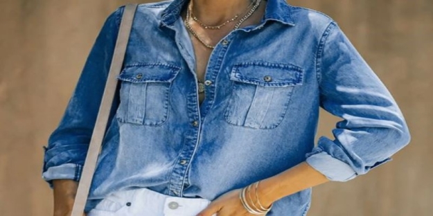 White jeans instantly freshen up your look. Pair them with a chambray or light denim shirt tucked or tied at the waist. Espadrilles (with or without a wedge) are summer-friendly and add a soft, casual touch. You can roll the hem of the jeans for an even more relaxed feel.